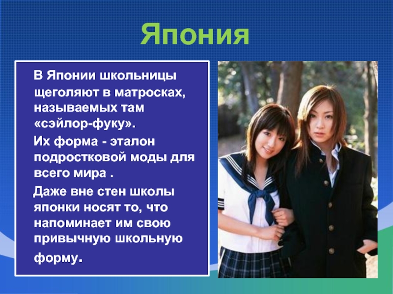 В Японии школьницы щеголяют в матросках, называемых там «сэйлор-фуку».