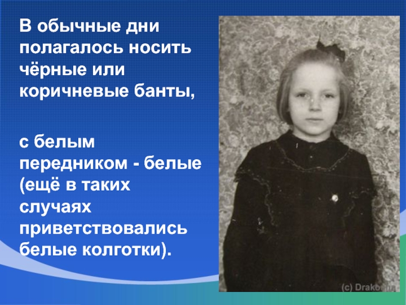 Слайд 11 В обычные дни полагалось носить чёрные или коричневые банты,