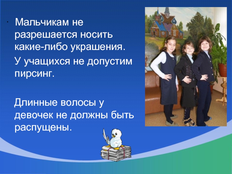 Слайд 32· Мальчикам не разрешается носить какие-либо украшения.