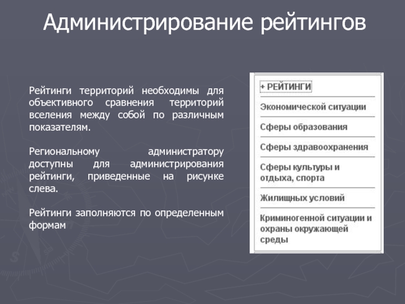 Слайд 41Администрирование рейтингов