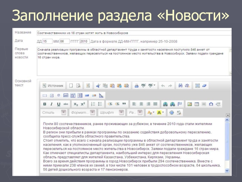 Слайд 14Отображение информации в разделе «Новости»