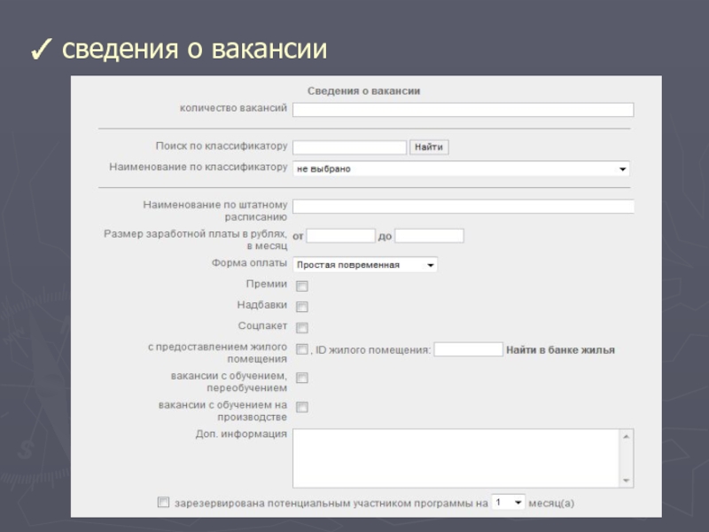 Слайд 24Заполнение карточки Банка вакансий