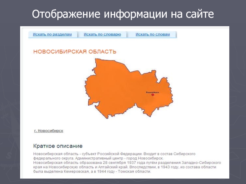 Слайд 20Отображение информации в подразделе
