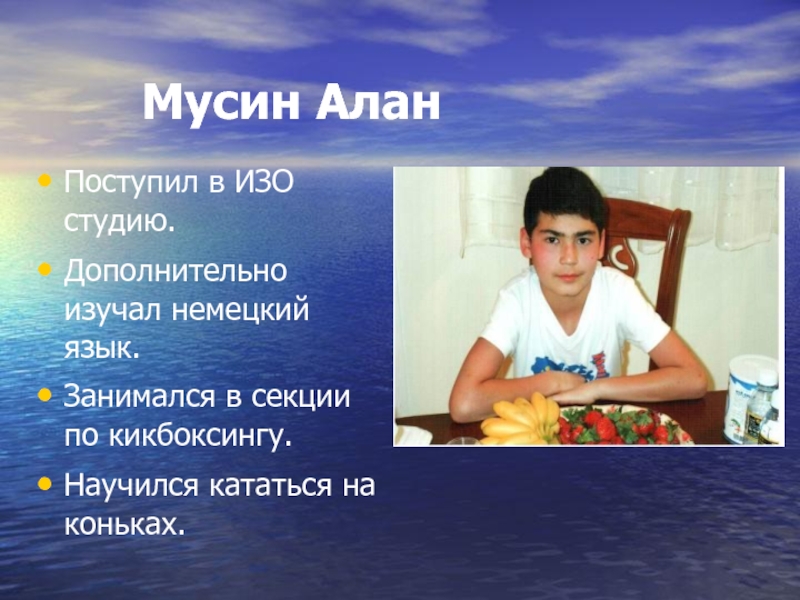 учебы в лицее, занятия танцами в ансамбле «Радость» и дополнительное изучение иностранного языка.