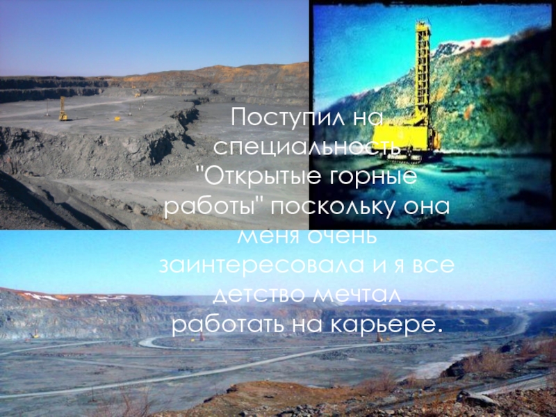 Слайд 6Поступил на специальность "Открытые горные работы" поскольку она меня очень заинтересовала