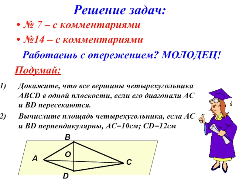 Докажите, что все вершины четырехугольника ABCD в одной плоскости, если его диагонали АС и ВD пересекаются.