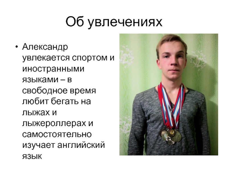 любит бегать на лыжах и лыжероллерах и самостоятельно изучает английский язык