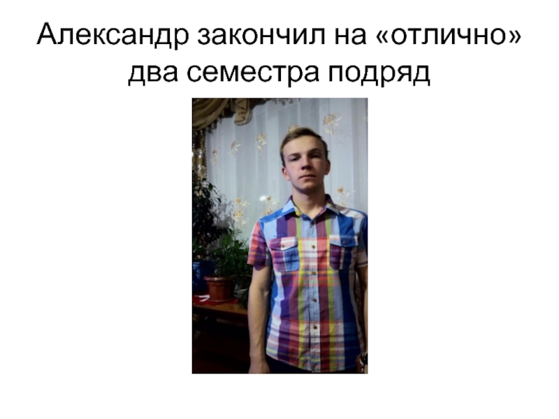 Слайд 2Александр закончил на «отлично» два семестра подряд
