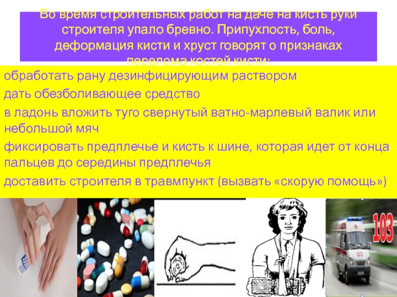 Слайд 26Во время строительных работ на даче на кисть руки строителя упало