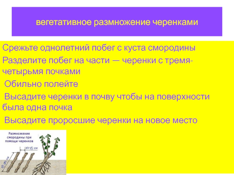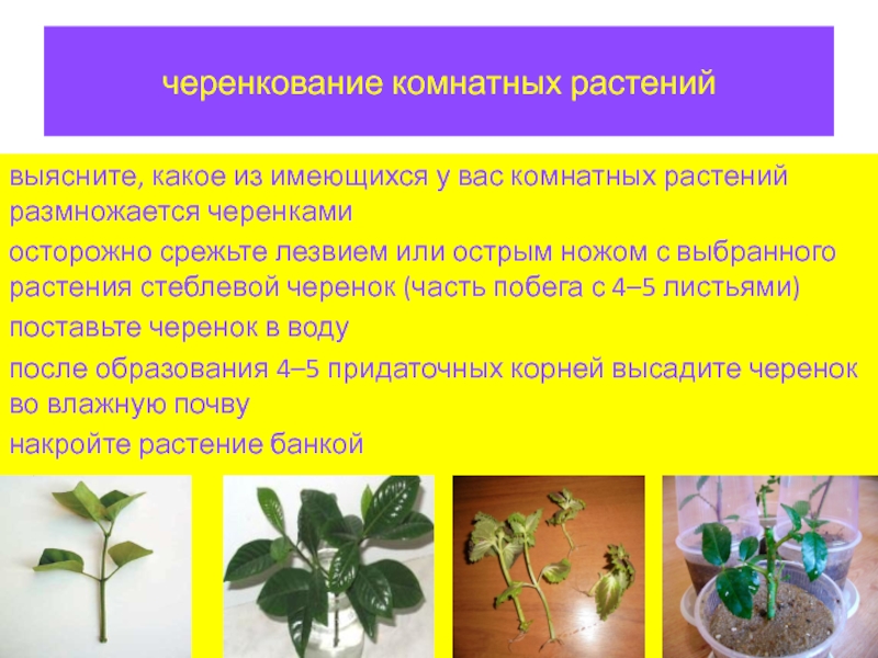 Слайд 10последовательность действий при вегетативном размножении комнатных растений