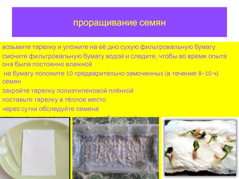 на бумагу положите 10 предварительно замоченных (в течение 8–10 ч) семян
