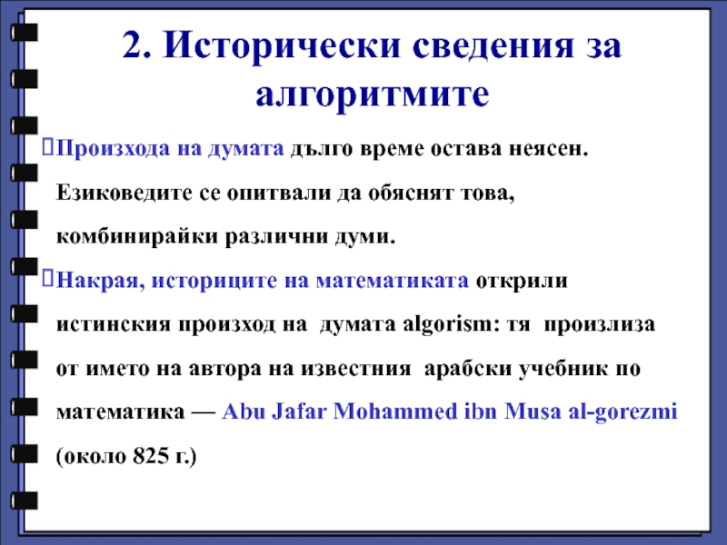 2. Исторически сведения за алгоритмите
