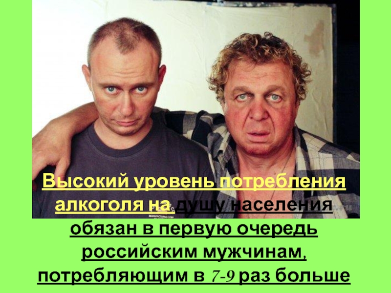 российским мужчинам, потребляющим в 7-9 раз больше чистого алкоголя, чем женщины.