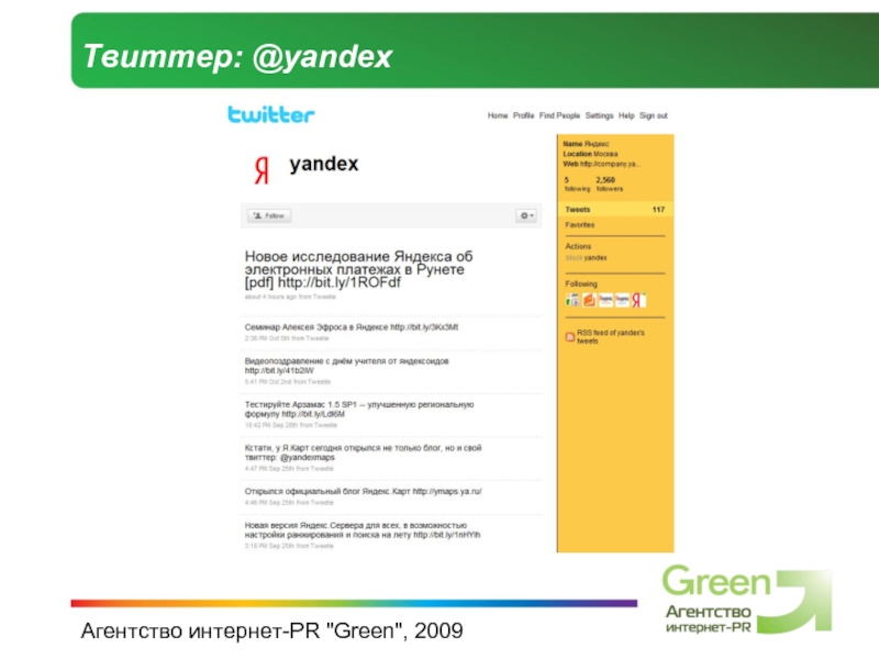Слайд 9Агентство интернет-PR "Green", 2009