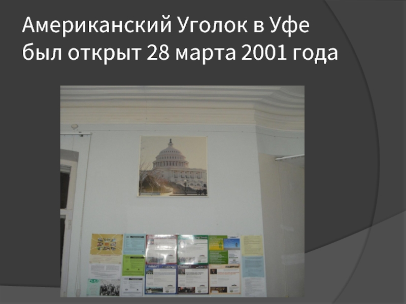 Слайд 2Американский Уголок в Уфе был открыт 28 марта 2001 года