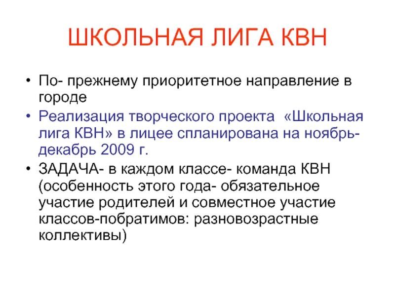 лига КВН» в лицее спланирована на ноябрь-декабрь 2009 г.
