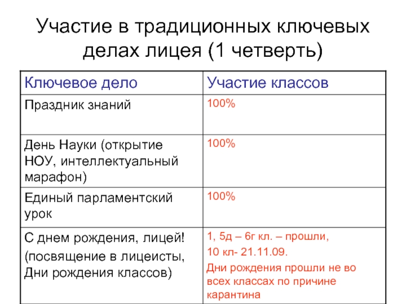 Слайд 20Участие в традиционных ключевых делах лицея (1 четверть)