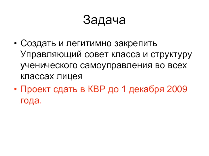 Создать и легитимно закрепить Управляющий совет класса и структуру ученического самоуправления