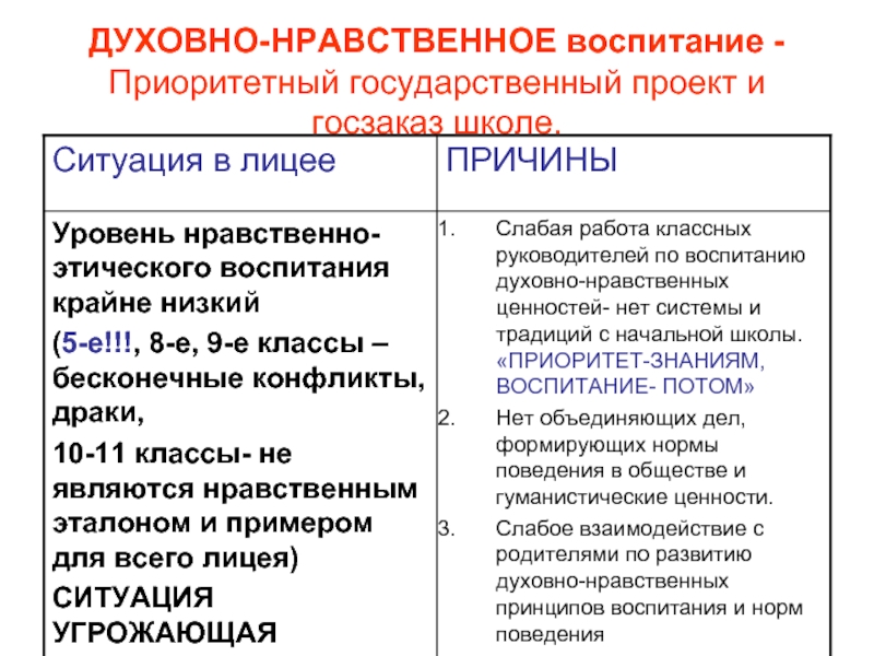 Слайд 22ДУХОВНО-НРАВСТВЕННОЕ воспитание - Приоритетный государственный проект и госзаказ школе.