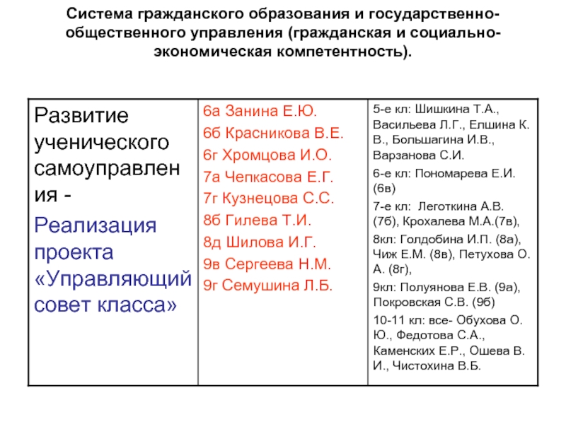 Слайд 5Система гражданского образования и государственно-общественного управления (гражданская и социально-экономическая компетентность).