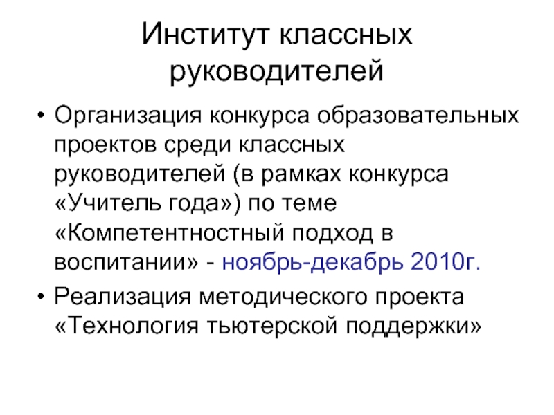 конкурса «Учитель года») по теме «Компетентностный подход в воспитании» - ноябрь-декабрь 2010г.