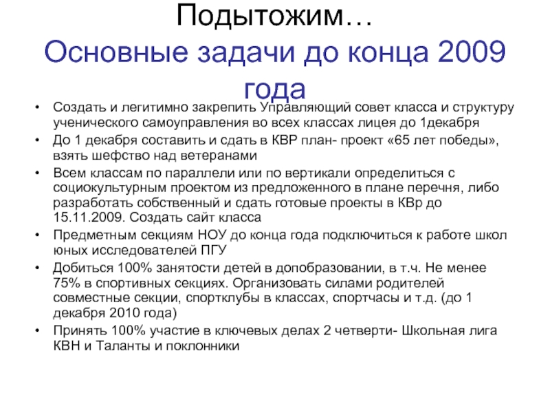 Слайд 26Основные задачи до конца 2009 года (продолжение)