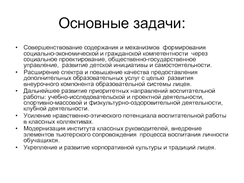 И основные задачи в области воспитания лицеистов до конца 2009 года