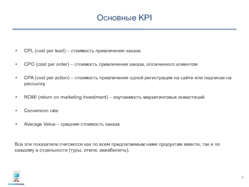 Все эти показатели считаются как по всем предлагаемым нами продуктам вместе, так и по каждому в отдельности (туры, отели, авиабилеты).