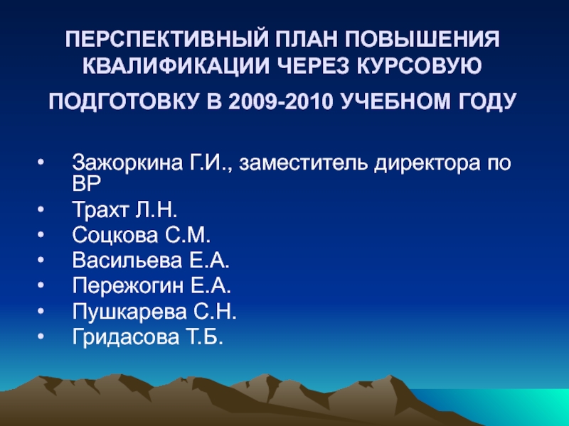 Слайд 31ПЕРСПЕКТИВНЫЙ ПЛАН ПОВЫШЕНИЯ КВАЛИФИКАЦИИ ЧЕРЕЗ КУРСОВУЮ ПОДГОТОВКУ В 2009-2010 УЧЕБНОМ ГОДУ