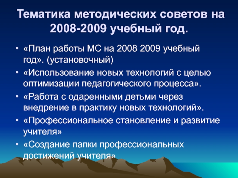 Слайд 12Тематика методических советов на 2008-2009 учебный год.