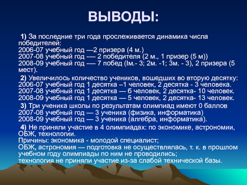 4) Не приняли участие в 4 олимпиадах: по экономике, астрономии, ОБЖ, технологии.