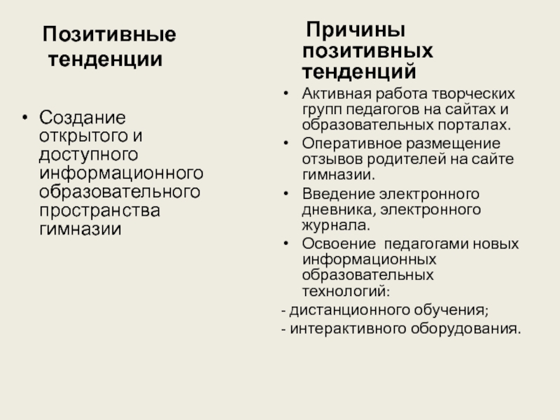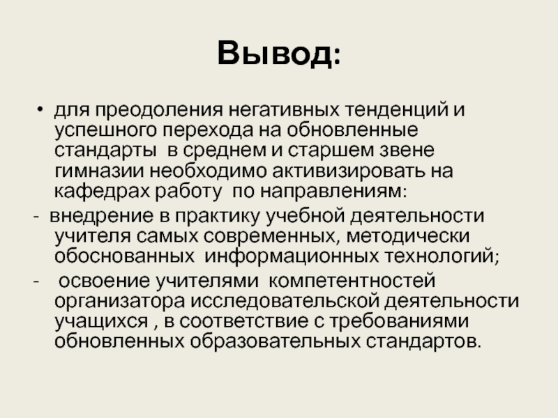 - внедрение принципов здоровьесбережения; - модернизация инфраструктуры гимназии.