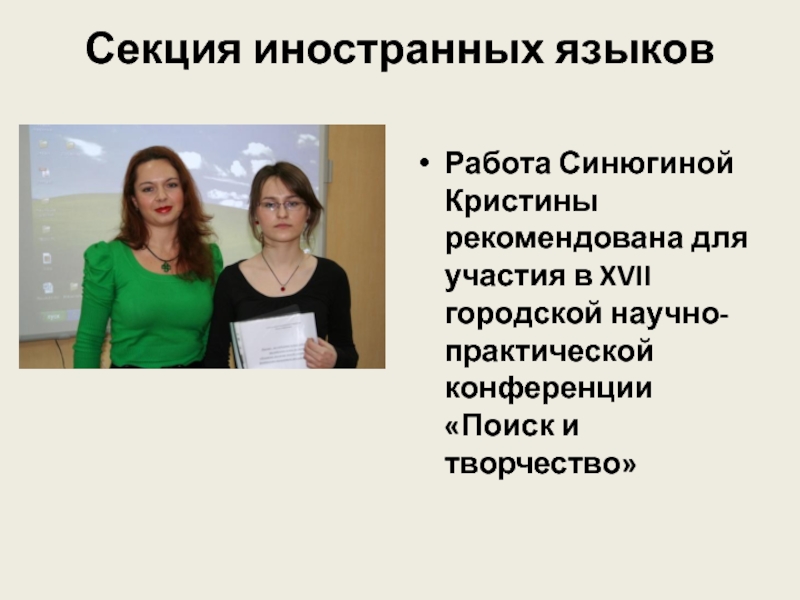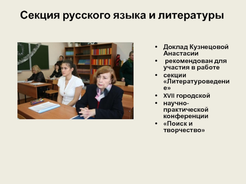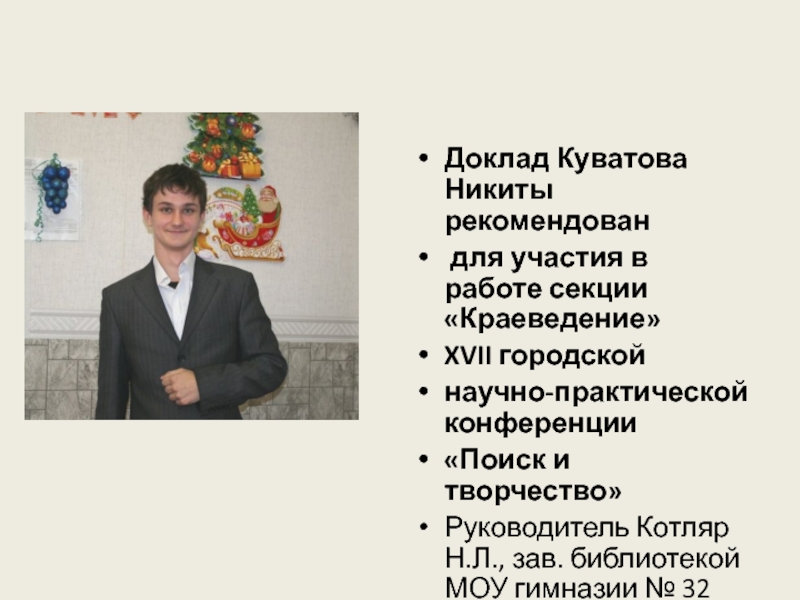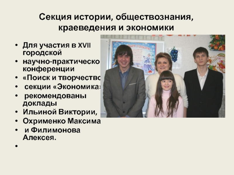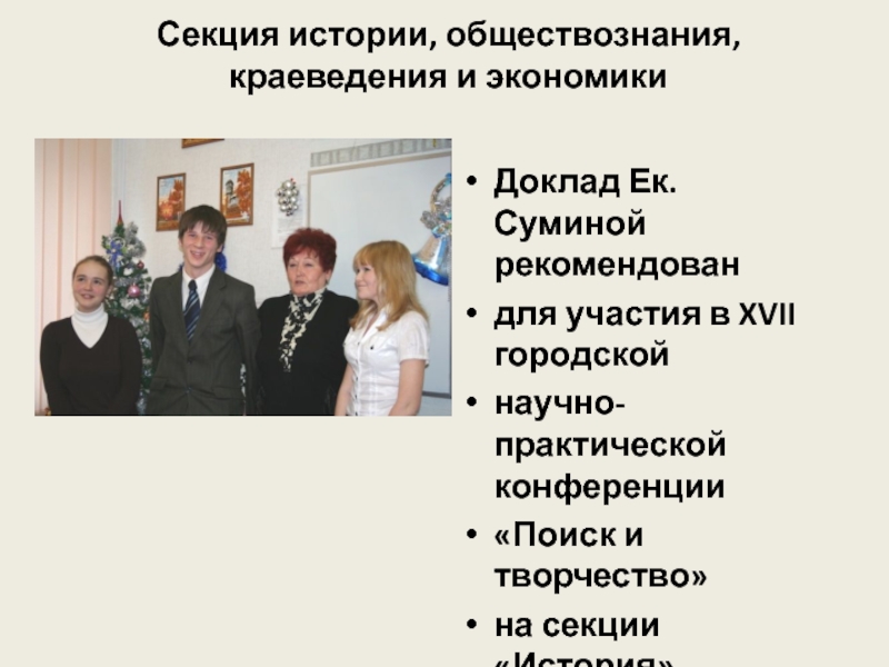 рекомендован для участия в XVII городской научно-практической конференции «Поиск и творчество»