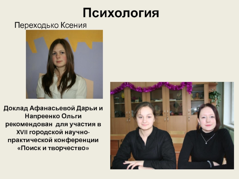 Доклад Афанасьевой Дарьи и Напреенко Ольги