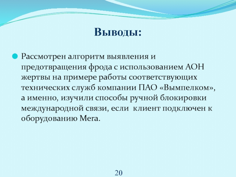 Слайд 13Технология блокировки фрода на примере компании ПАО «Вымпелком»