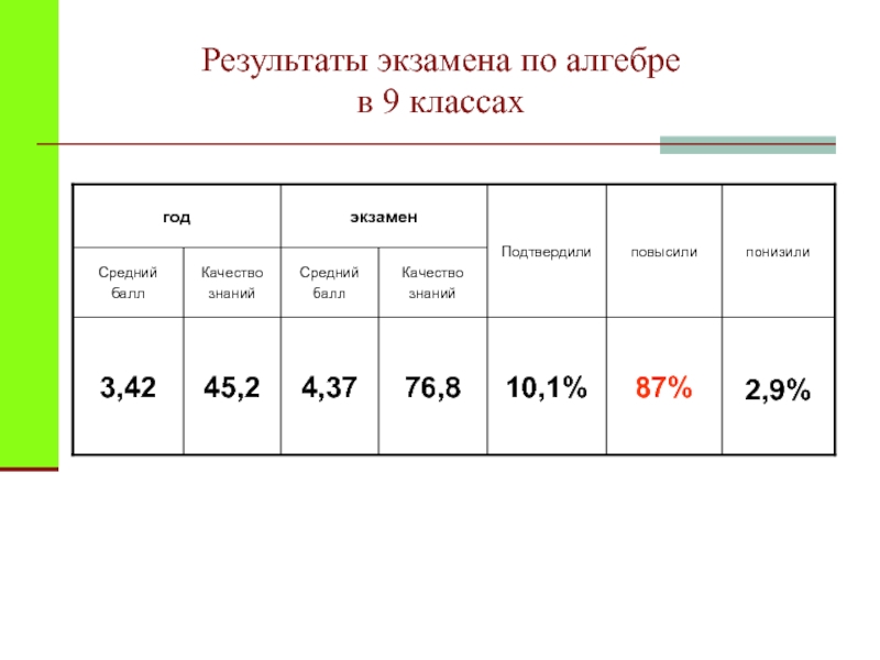 Слайд 22Результаты экзамена по алгебре в 9 классах