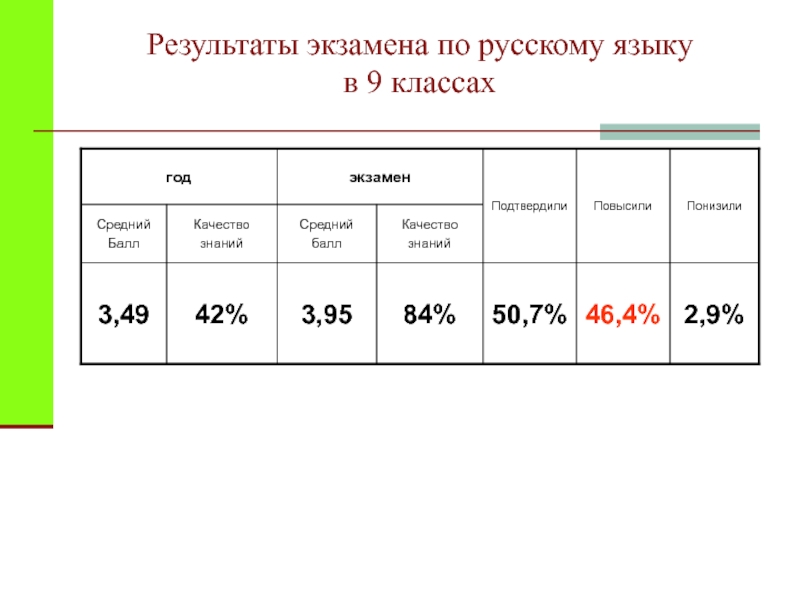 Слайд 23Результаты экзамена по русскому языку в 9 классах