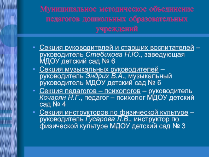 Слайд 6Муниципальное методическое объединение педагогов дошкольных образовательных учреждений