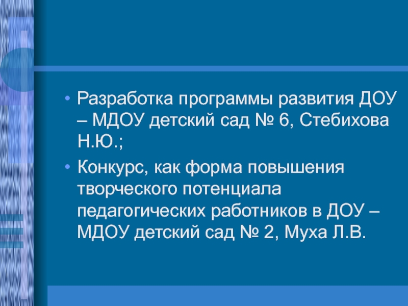 Разработка программы развития ДОУ – МДОУ детский сад № 6, Стебихова