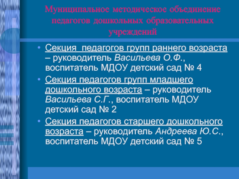 Слайд 5Муниципальное методическое объединение педагогов дошкольных образовательных учреждений