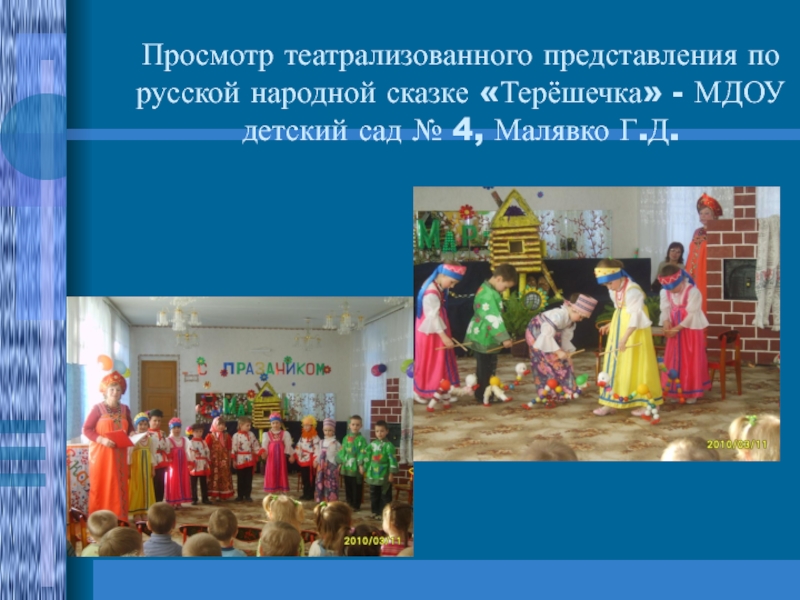 Слайд 8Просмотр театрализованного представления по русской народной сказке «Терёшечка» - МДОУ детский