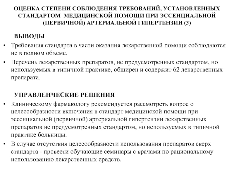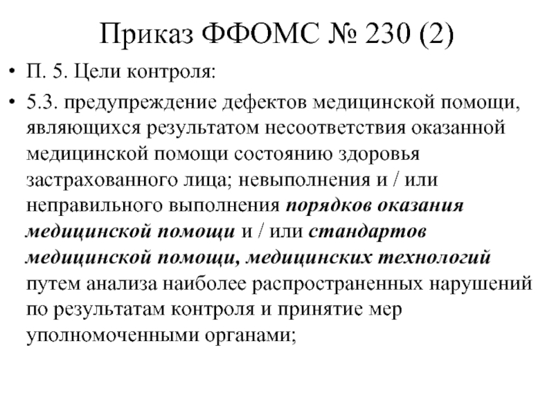 помощи, являющихся результатом несоответствия оказанной медицинской помощи состоянию здоровья застрахованного лица; невыполнения и / или неправильного выполнения порядков оказания медицинской помощи и / или стандартов медицинской помощи, медицинских технологий путем анализа наиболее распространенных нарушений по результатам контроля и принятие мер уполномоченными органами;