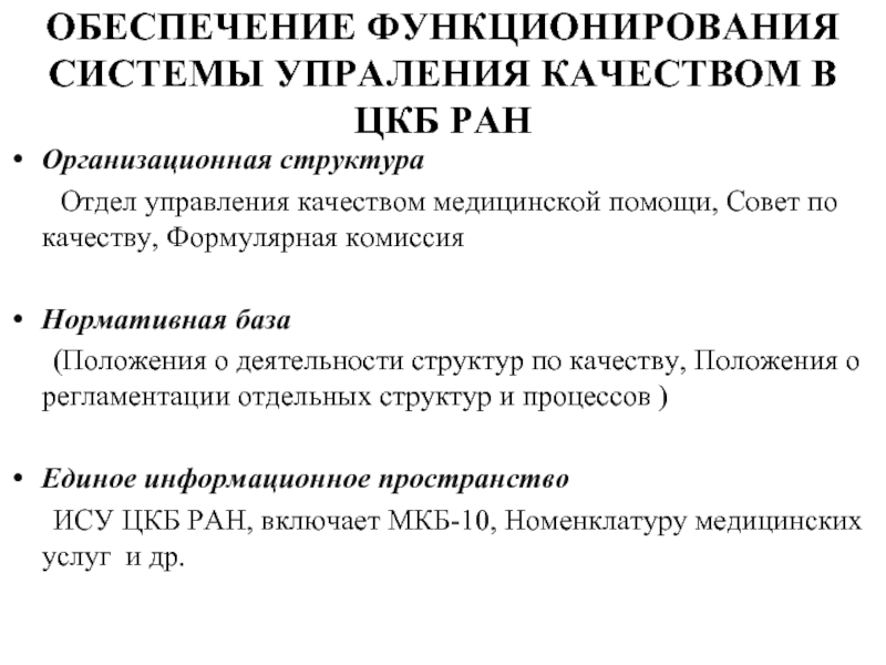 Слайд 79ОБЕСПЕЧЕНИЕ ФУНКЦИОНИРОВАНИЯ СИСТЕМЫ УПРАЛЕНИЯ КАЧЕСТВОМ В ЦКБ РАН