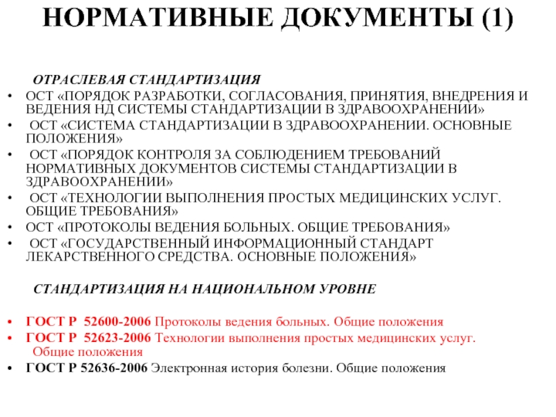 ОСТ «СИСТЕМА СТАНДАРТИЗАЦИИ В ЗДРАВООХРАНЕНИИ. ОСНОВНЫЕ ПОЛОЖЕНИЯ»