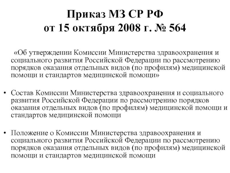 Комиссии Министерства здравоохранения и социального развития Российской Федерации по рассмотрению порядков оказания отдельных видов (по профилям) медицинской помощи и стандартов медицинской помощи»