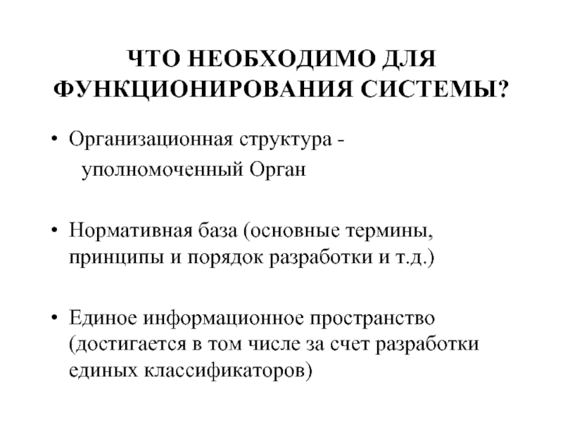 Слайд 78ЧТО НЕОБХОДИМО ДЛЯ ФУНКЦИОНИРОВАНИЯ СИСТЕМЫ?
