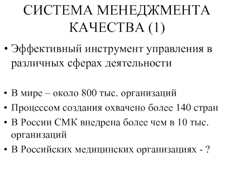 Слайд 1Анализ внедрения системы управления качеством в медицинской организации на примере деятельности
