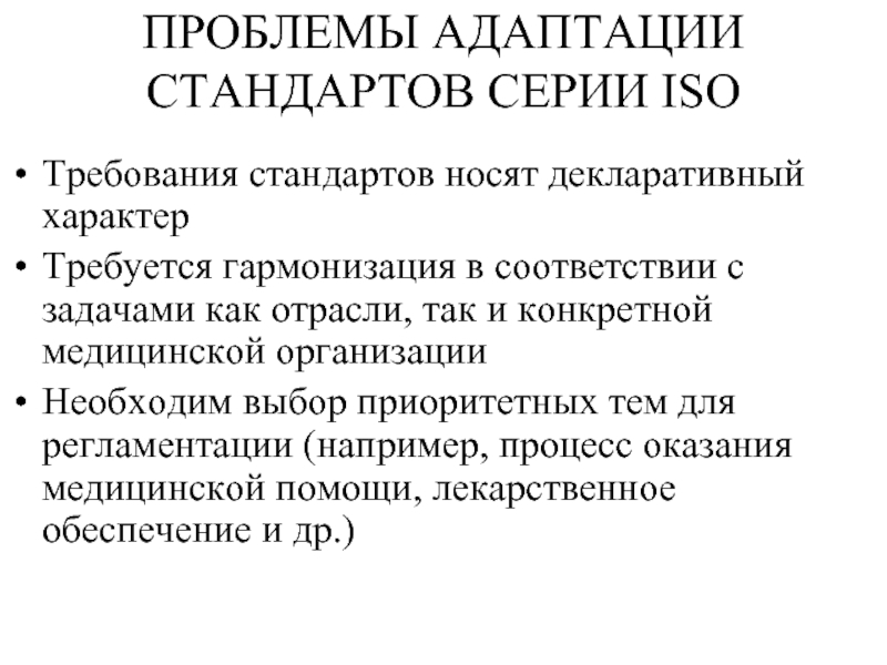 Адаптация национальных, федеральных стандартов, разработка стандартов мед.организации, СОПов (стандартные операционные процедуры), мониторинг их применения