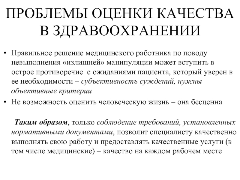 Слайд 3ПРОБЛЕМЫ ОЦЕНКИ КАЧЕСТВА В ЗДРАВООХРАНЕНИИ