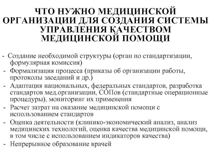 Слайд 93ЧТО НУЖНО МЕДИЦИНСКОЙ ОРГАНИЗАЦИИ ДЛЯ СОЗДАНИЯ СИСТЕМЫ УПРАВЛЕНИЯ КАЧЕСТВОМ МЕДИЦИНСКОЙ ПОМОЩИ